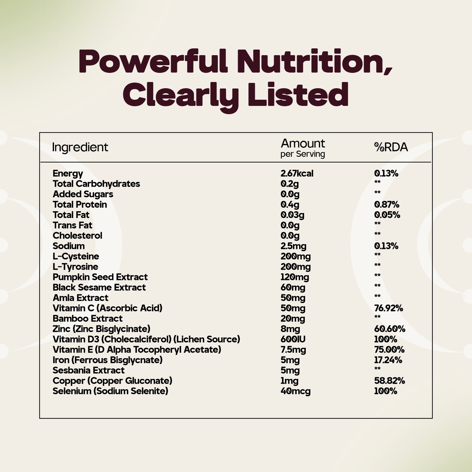 Black Sesame and Biotin enhance nourishment, thickness, and follicle resilience.